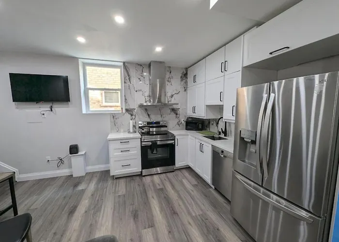 Disfruta de tus vacaciones en Kitchener en Apartamento 2BR 1 king 1 Queen with parking 3 GBPS internet. Ideal para quienes buscan una experiencia auténtica, está situado a 6 km del Ken Seiling Waterloo Region Museum y a unos 15 minutos en coche del Doon Heritage Village. Además, los huéspedes pueden practicar tenis para mantenerse activos.